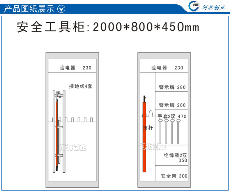 1、柜體是冷軋鋼板卷壓成型,厚度有1.0mm,1.2mm,1.5mm供選擇。柜體表面采用靜電防腐噴塑工藝,顏色為駝灰色,柜門裝有通體透明鋼化玻璃,透過玻璃可以看到分類有序的工器具。