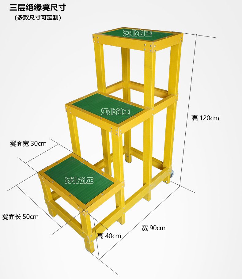 2、同類產品:絕緣高凳,絕緣高低凳,絕緣多層凳,護欄型絕緣凳,可折疊絕緣凳。