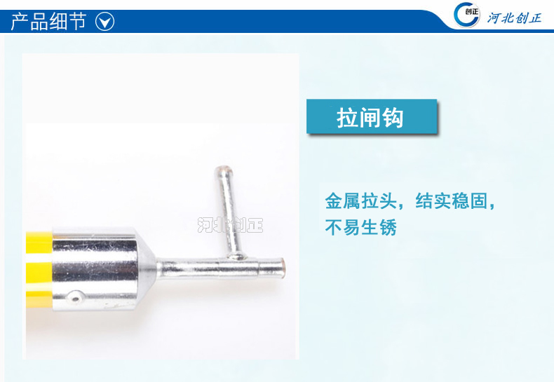 1、絕緣桿:采用絕緣性能及機械強度強、重量輕、經防潮處理的環氧樹脂管制成。