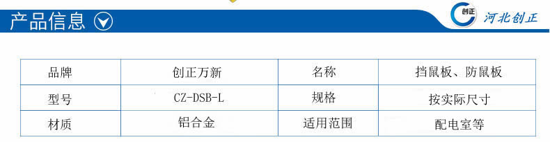 產品名稱:鋁合金材質成套擋鼠板防鼠板
